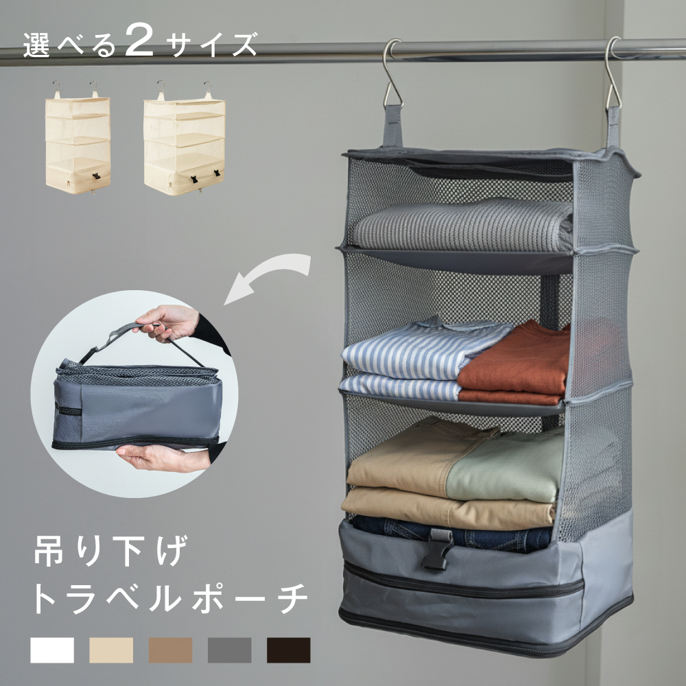 トラベルポーチ 吊り下げ 圧縮 インナーバッグ 4段式 衣類ラック 収納 旅行 出張 クローゼット 省スペース 大容量 衣装ケース en-hhg003