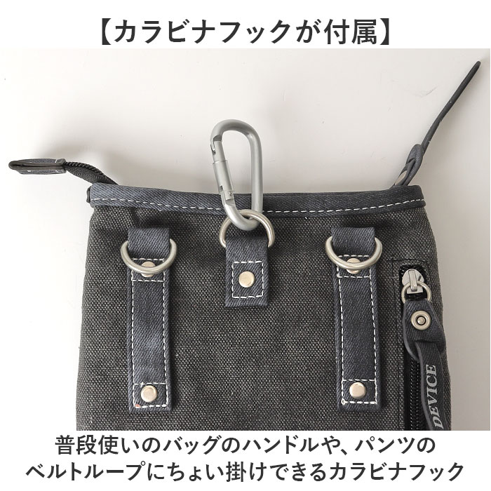 | 【ミニマルに小物をIN】 ・メンズのマストアイテムの持ち運びに!「DEVICE」からシザーケースが発売! 【ミニマム派に嬉しいサイズ】 ・ミニ財布やスマホなどお出掛けに連れて行きたいアイテムがコンパクトに収納できるサイズ 【安心の天ファスナータイプ】 ・しっかりとクローズできる天ファスナータイプ。小物がこぼれ落ちたり、外から見えないのが◎ 【小物を整頓して収納】 ・内側と外側に収納ポケットを配置し、小物を整頓して収納できるのもポイント。 【カラビナフックが付属】 ・普段使いのバッグのハンドルや、パンツのベルトループにちょい掛けできるカラビナフック 【スタイル自在の2WAY仕様】 ・ショルダーベルトもついており、斜めがけや肩掛けスタイルも可能。 【直接ベルトに付けることも】 ・背面にベルトを通せるループがついており、ベルトポーチとして使うのもオススメ♪ 【ポケット仕様】 ・メインルーム・・・ファスナーポケット×1 ・フロント・・・ファスナーポケット×1、フラップポケット×1 ・背面・・・ファスナーポケット×1 |