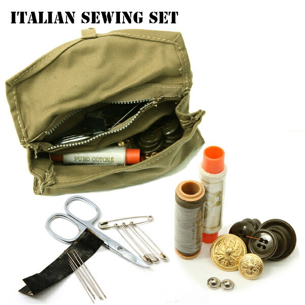 | イタリア軍の携帯用裁縫セット。未使用のデッドストック品です。ハサミ、ピン、ボタン、針、糸などが袋に入った便利なセット。内部にはファスナー付きのポケットが有ります。お好みで中身を入れ替えて使ってもOK!ミリタリーやヴィンテージの雰囲気が好きな方へ♪ |