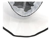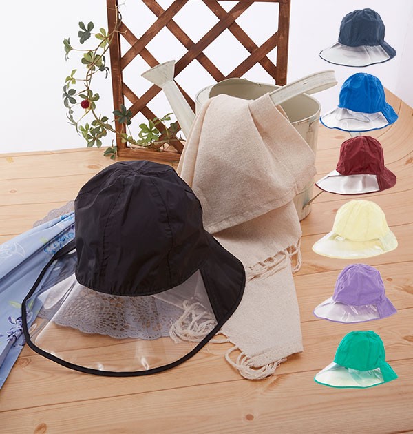 | ナイロンのレインハットです。つばの前面がクリアになっており自転車などで前が見やすいデザインです。裏地は蒸れにくいメッシュになっており、あご紐付き。 |