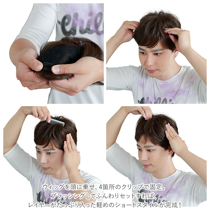 | ・誰でも簡単装着!付け心地の良さを追求した「男性用五分ウィッグ レイヤーショート」が登場。 ・自毛を生かして、頭頂部全体をカバーできる五分タイプのウィッグ。 ・ウィッグを頭に乗せ、4箇所のクリップで固定。ブラッシングしてふんわりセットすれば、レイヤーがたっぷり入った軽めのショートスタイルが完成! ・クリップの下にテープ台が縫い付けられた仕様。クリップを取り外してテープ台に医療用テープを貼り、頭皮に直接貼り付けることも可能。(※医療用テープが付属しておりません。) ・ウィッグのフチ全体が伸縮するから、自分サイズにしっかりフィット!締めつけ感がなく、長時間の着用も快適。 ・ウィッグ内側はメッシュ仕様。通気性が良く、ムレにくいのが嬉しい◎ ・細かいシャギーやレイヤーを入れることで、自毛の襟足とウィッグが重なる部分に段差が生まれず、境目が目立ちにくいのもポイント。 ・襟足に向けて下にカーブしたデザインになっており、ウィッグ初心者の方でも馴染ませやすく安心。 ・もみあげと襟足部分は自毛を見せられるつくりにすることで、リアル感アップ! ・人工スキン部分は、より本物に近い頭皮の質感を表現。 ・日本製の耐熱ファイバーを使用し、ツヤを軽減した人毛のような細さがウィッグに見えない自然なスタイルを演出! ・コテやヘアアイロンの使用もOK。(※耐熱温度は180度、適正温度は130〜150度です。) ・手洗いできるからいつも清潔。 ・おしゃれを楽しむアイテムとしてはもちろん、医療用としても活躍。 |