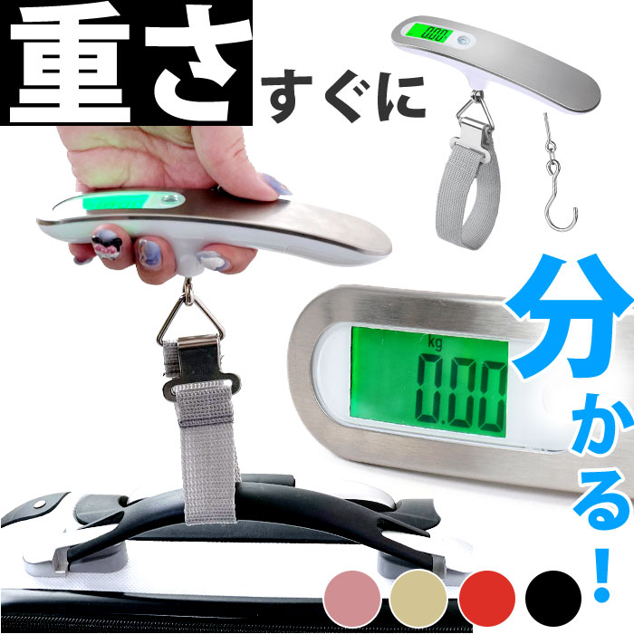 ・コンパクトで便利!スーツケースの重量オーバーを防ぐ◎デジタルスケールが登場。 【重量オーバーによる超過料金を回避】 ・スーツケースの重量を測って荷物の量を調節できる!超過料金を回避するのに役立つアイテム。 【もう空港で慌てなくてOK!】 ・もう空港の重量測定でハラハラしたり、慌てる必要なし!事前にチェックして、スムーズに搭乗◎ 【コンパクトで持ち運びしやすい】 ・片手に収まるコンパクトさで、重さは約80gと軽量!旅行時に持ち歩いてもストレスにならない。 【どこでもお手軽に計測できる】 ・スーツケースの取手にベルトを通して持ち上げるだけで計測できる!場所を選ばないお手軽さ。 【ホールド機能つきでわかりやすい】 ・計測時にHoldの文字を表示し、重さがひと目で確認できる。LED液晶のスクリーンで見やすさも◎ 【風袋測定機能つき】 ・測定値が表示された状態で、電源ボタンを一度押せば風袋引きができるので便利! 【電池式で繰り返し使える】 ・ボタン電池式なので、長期間繰り返し使えるのも嬉しいポイント。 ・※購入時にボタン電池が1つ付いてきます。 |