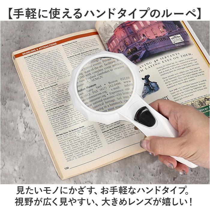 ・見たいモノにかざす、お手軽なハンドタイプ。視野が広く見やすい、大きめレンズが嬉しい!