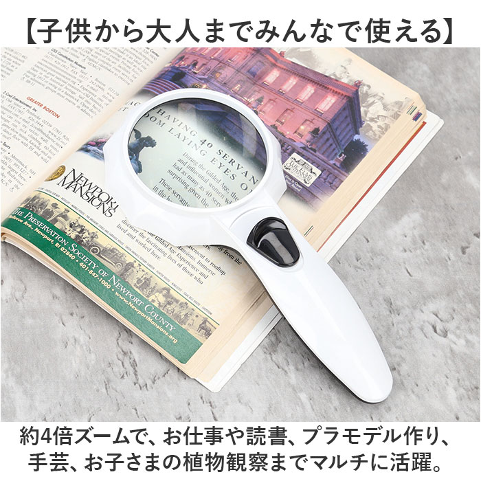 ハンドルーペ LEDライト付き 虫眼鏡 通販 虫メガネ 拡大鏡 ルーペ ムシメガネ むしめがね 拡大レンズ 手持ちルーペ 読書ルーペ ledライト付き 軽量 軽い