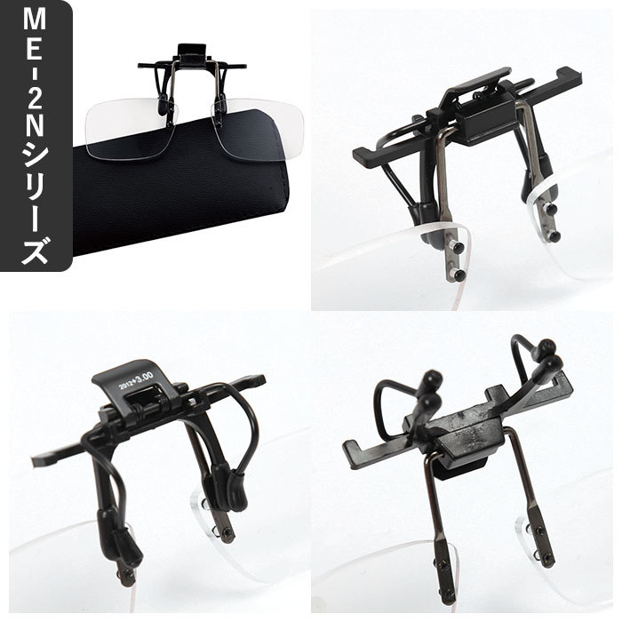 | ・メガネに装着できるクリップ式の老眼鏡「おたすけグラス」が発売。 ・あらゆるメガネに対応可能なクリップを採用!普段お使いのメガネにワンタッチで装着することができる便利アイテム。 ・クリップ部分のフレームカラーはブラックで、どんなメガネにも合わせやすい。 ・レンズは+1.50/+2.00/+2.50/+3.00と、ご自身の視力に応じて選べる◎ ・また、レンズも選べる2タイプ!好みや用途に合わせてチョイスしてみて♪ ・スタンダードメガネはもちろん、スポーツタイプのメガネにも装着可能で、幅広く使えるME-2Nシリーズ。 ・ワイドタイプのレンズで、より広い視野で細かい作業が可能なME-2Wシリーズ。 ・専用ケース付きで、持ち運びにも便利。 |