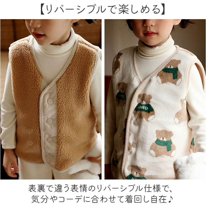 | リバーシブルベスト キッズ もこもこ 防寒 |