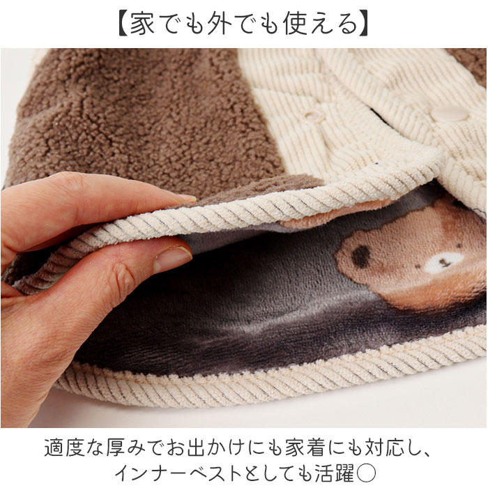| 【もこもこ暖か可愛い】 ・サッと羽織れて暖かいリバーシブルボアベスト♪ 【リバーシブルで楽しめる】 ・表裏で違う表情のリバーシブル仕様で、気分やコーデに合わせて着回し自在♪ 【軽くて暖かいボア素材】 ・保温性抜群のもこもこボアが体を優しく包み込み、寒い日も快適◎ 【スナップボタン式】 ・フロントのスナップボタンで、開けても閉めても可愛らしいデザイン! 【家でも外でも使える】 ・適度な厚みでお出かけにも家着にも対応し、インナーベストとしても活躍〇 【男の子にも女の子にも】 ・シンプルなデザインで柄物とも相性良く、パンツにもスカートにも合わせやすい。 |