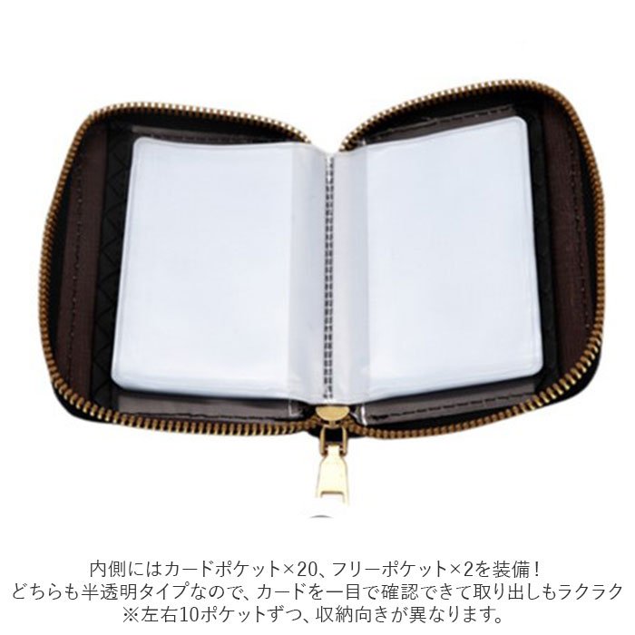 | ・編み込みデザインが印象的なカードケース。 ・ミニバッグでのお出かけにも最適なコンパクトサイズ! ・開口部は大きく開くラウンドファスナー式。 ・内側にはカードポケット×20、フリーポケット×2を装備!どちらも半透明タイプなので、カードを一目で確認できて取り出しもラクラク。(※左右10ポケットずつ、収納向きが異なります。) ・お札を折ってフリーポケットに収納することも可能。 ・ポイントカードやクレジットカードをすっきりと整理整頓♪キャッシュレス派の方にもおすすめ。 |