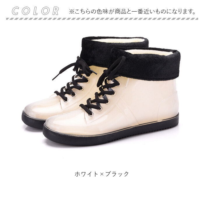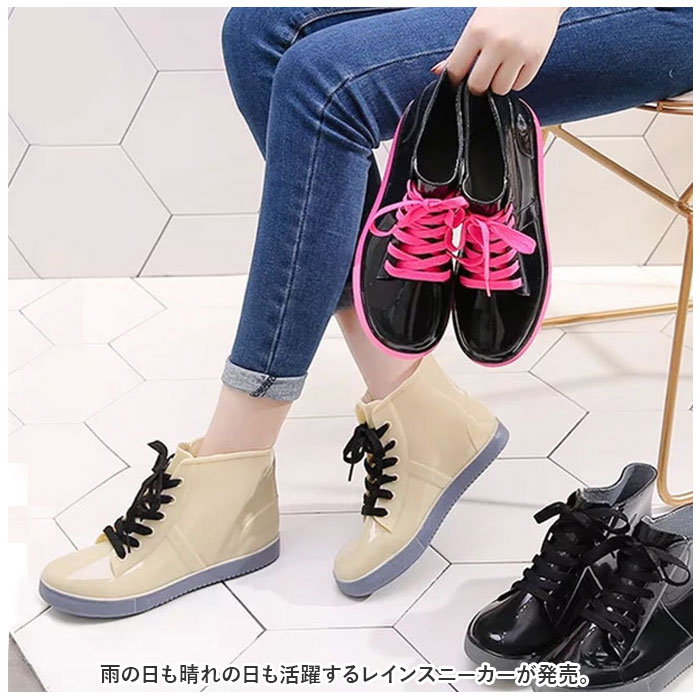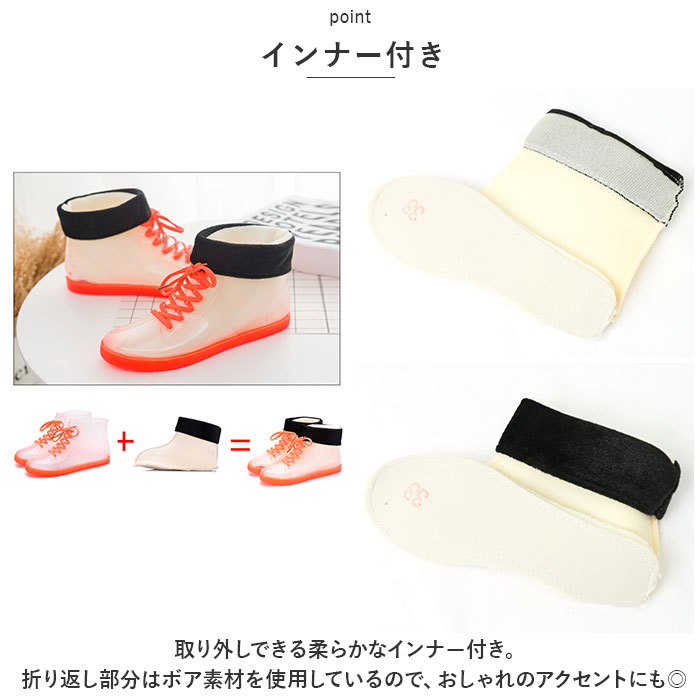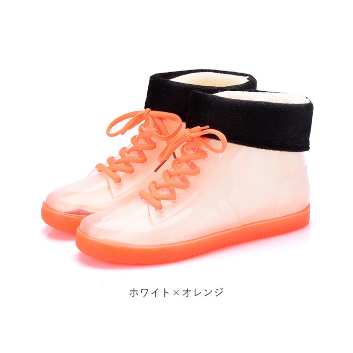 | ・雨の日も晴れの日も活躍するレインスニーカーが発売。 【ハイカットタイプ】 ・レインブーツに見えないスタイリッシュなハイカットタイプ。いつものスタイルを崩さず、雨の日もオシャレに。 【PVC素材】 ・水や汚れに強いPVC素材を採用。雨の日も足元を気にすることなく安心して履ける。 【快適な履き心地】 ・屈曲性に優れた柔らかな素材なので、履き心地も快適♪ 【滑りにくい】 ・靴底には滑り止め加工を施しているので、濡れた場所でも滑りにくい。 【インナー付き】 ・取り外しできる柔らかなインナー付き。折り返し部分はボア素材を使用しているので、おしゃれのアクセントにも◎ 【豊富なカラー】 ・ベーシックカラーや靴下見せコーデもできるクリアタイプなど豊富なカラー展開で幅広いコーディネートに対応。 |