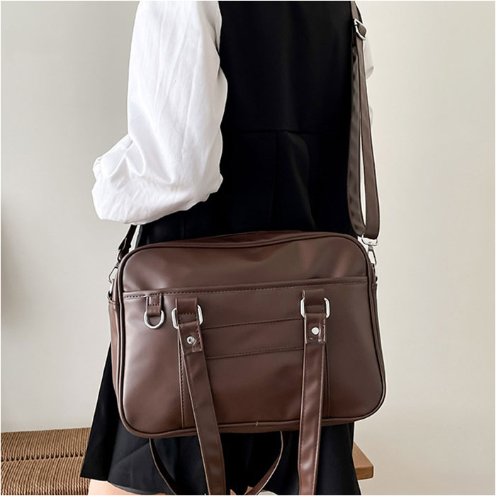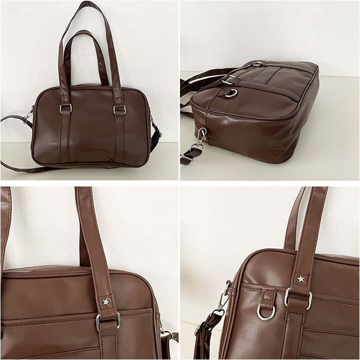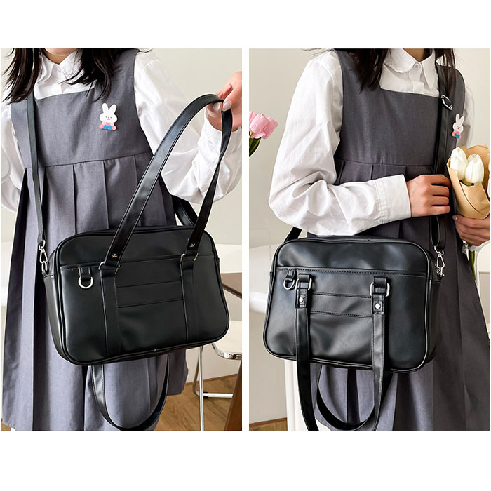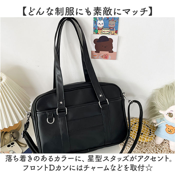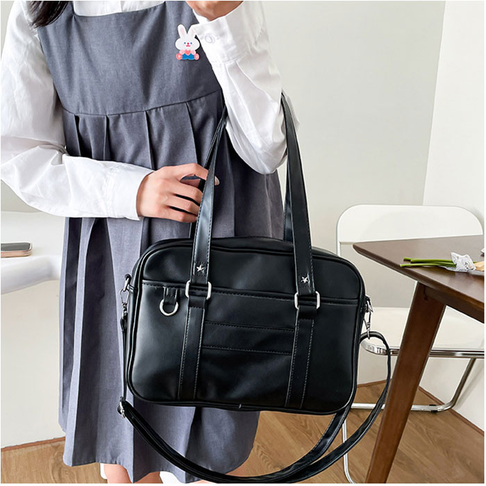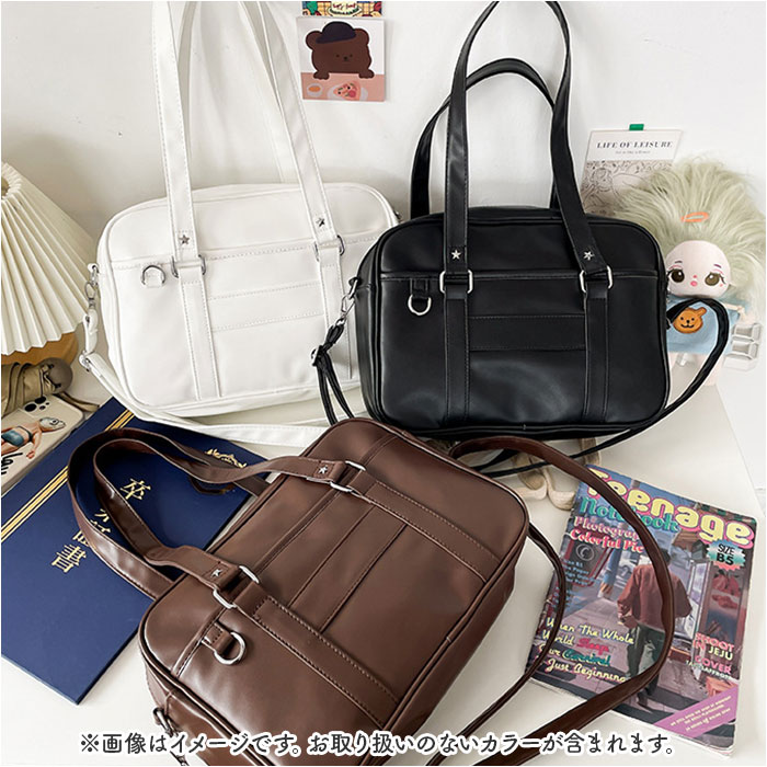 | 【すっきりまとまる通学の相棒☆】 ・コンパクトでサッと持ち出せる!使い勝手抜群な「スクールバッグ」が新登場。 【ミニサイズのベーシックフォルム】 ・荷物が少ない日に最適なスタンダード形状。満員電車等でも邪魔になりにくいスリム設計! 【お好みに合わせてスタイルチェンジ】 ・肩掛けはもちろん。長さ調節可能なショルダーを取り付け、斜め掛け等も自在な2way♪ 【開閉スムーズ、安心のファスナー式】 ・ガバっと開いて取り出しやすく、ファスナーを閉じればプライバシーを確保。 【B5対応で必要な物はしっかりと】 ・B5が横向きにすっぽり。ポーチやドリンクボトル、ステーショナリー類もざっくりIN! 【サクッと取り出せて迷子知らず】 ・合計4つのポケットを配置。スマホや定期もすぐに取り出せて、バッグ内で探す手間が不要。 【どんな制服にも素敵にマッチ】 ・落ち着きのあるカラーに、星型スタッズがアクセント。フロントDカンにはチャームなどを取付☆ 【ポケット仕様】 ・内側:オープンポケット×3 ・前面:オープンポケット×1 |