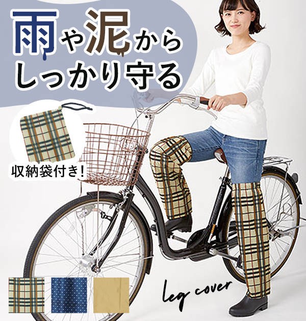 | 急な雨でもサッと簡単に装着できるレッグカバーです。 履き口が広いから長靴をはいたまま簡単に装着できます。 足元はスナップボタンで幅の調節ができ、太もも部分はマジックテープで調節ができるので、カバーがずれるのを防止します。 太ももまで長さがあるので、上にレインコートを着れば雨の日、自転車に乗ってもひざが濡れません☆ 小さく折りたたんで付属の携帯ポーチに収納すれば、雨で濡れてもカバンの中に入れられます。 |