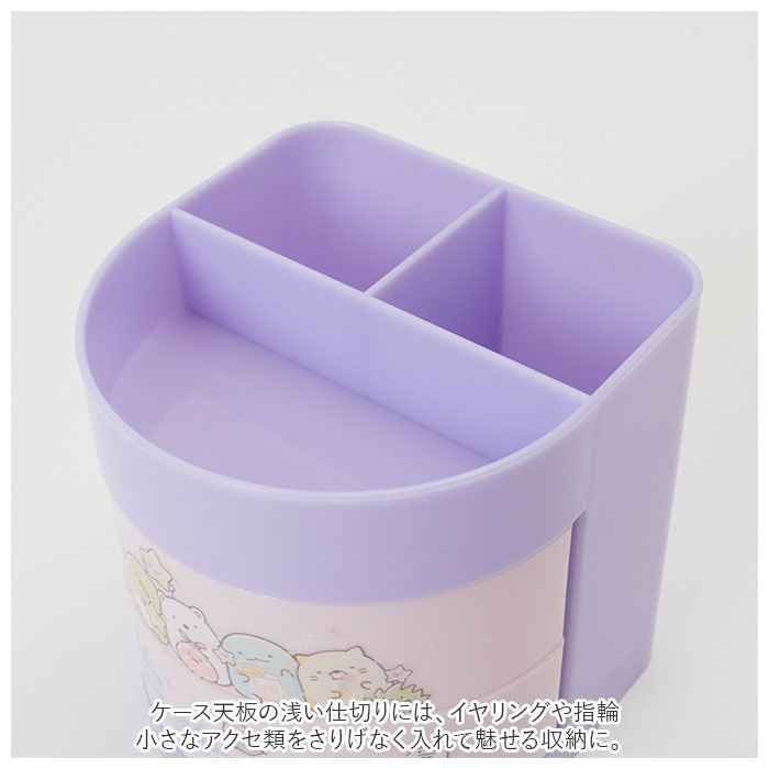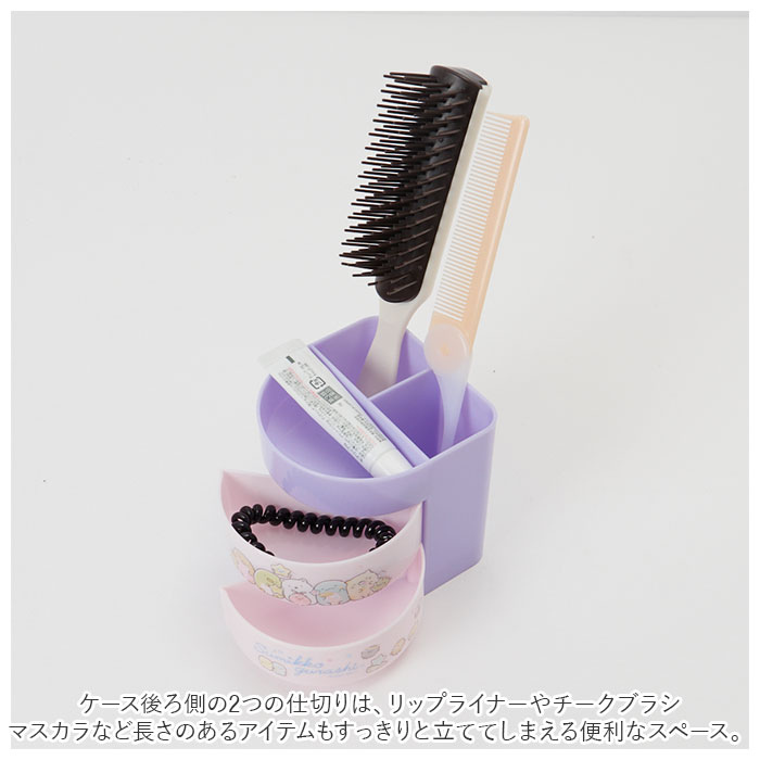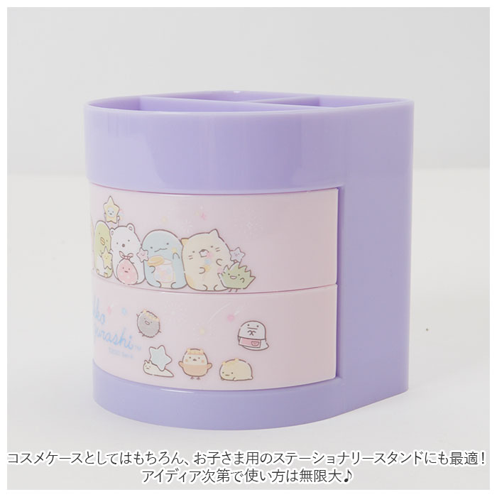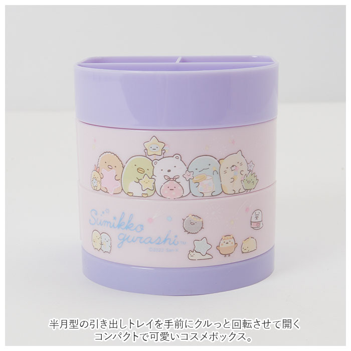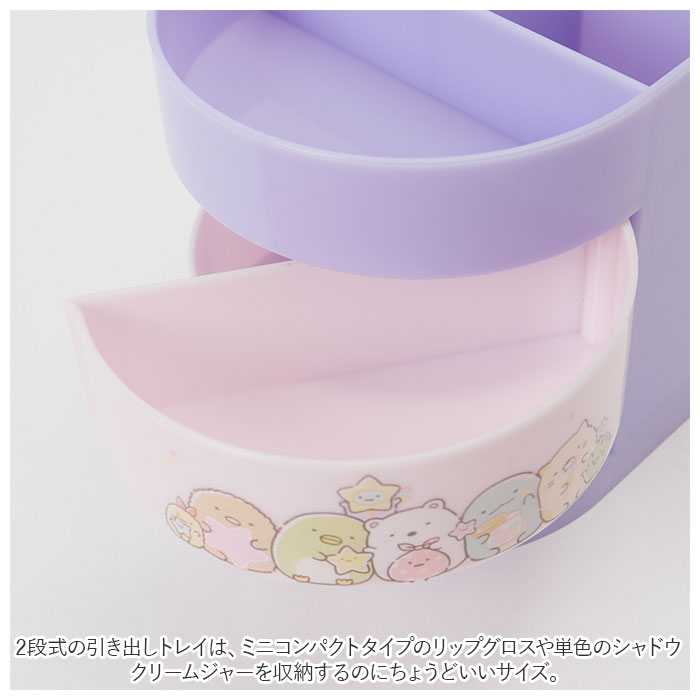 | ・大人気キャラクターのユルかわデザイン♪大人も子供もマルチに使える「スライドコスメケース」が新登場! ・半月型の引き出しトレイを手前にクルっと回転させて開く、コンパクトで可愛いコスメボックス。 2段式の引き出しトレイは、ミニコンパクトタイプのリップグロスや単色のシャドウ、クリームジャーを収納するのにちょうどいいサイズ。 ・ケース天板の浅い仕切りには、イヤリングや指輪、小さなアクセ類をさりげなく入れて魅せる収納に。 ・ケース後ろ側の2つの仕切りは、リップライナーやチークブラシ、マスカラなど長さのあるアイテムもすっきりと立ててしまえる便利なスペース。 ・コスメケースとしてはもちろん、お子さま用のステーショナリースタンドにも最適!アイディア次第で使い方は無限大♪ |
