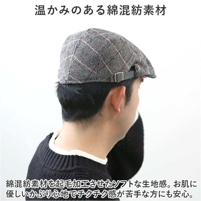 | ・スタイリッシュで大人な雰囲気のハンチングが発売。 【温かみのある綿混紡素材】 ・綿混紡素材を起毛加工させたソフトな生地感。お肌に優しいかぶり心地でチクチク感が苦手な方にも安心。 【型崩れしにくい丈夫なつくり】 ・ツバ部分は丈夫なつくりで型崩れしにくいのもポイント。 【フィット感の調節OK】 ・両サイドのアジャスターベルトでフィット感の調節もOK。 【ゴルフシーンにもマッチ】 ・クラシカルなデザインはゴルフなどのスポーツシーンにもマッチ。 【スッキリシルエットで幅広い年代に】 ・落ち着きのあるヘリンボーン柄とスッキリしたシルエット。幅広い年代に使用できるのでギフトにもおすすめ。 |