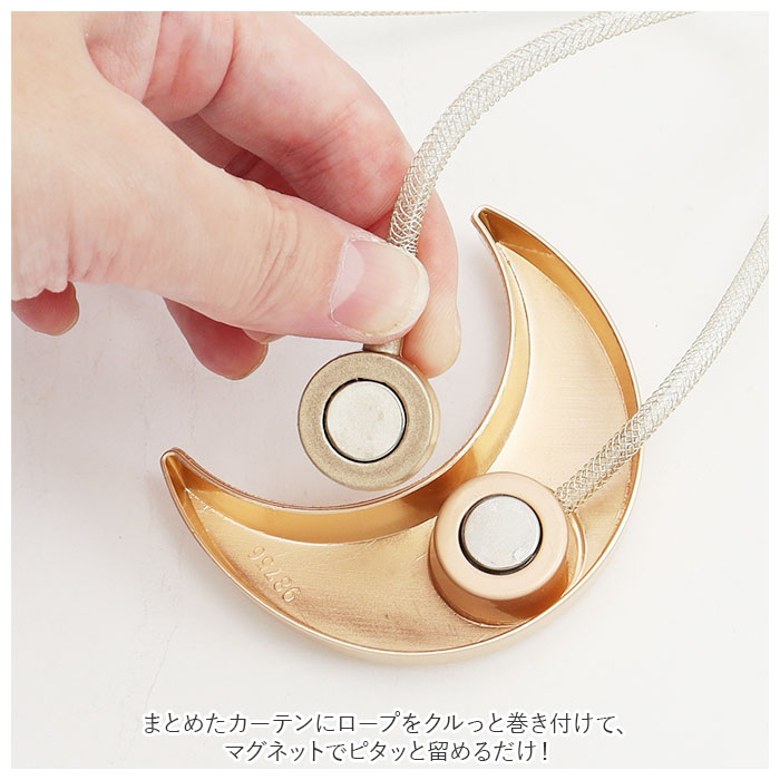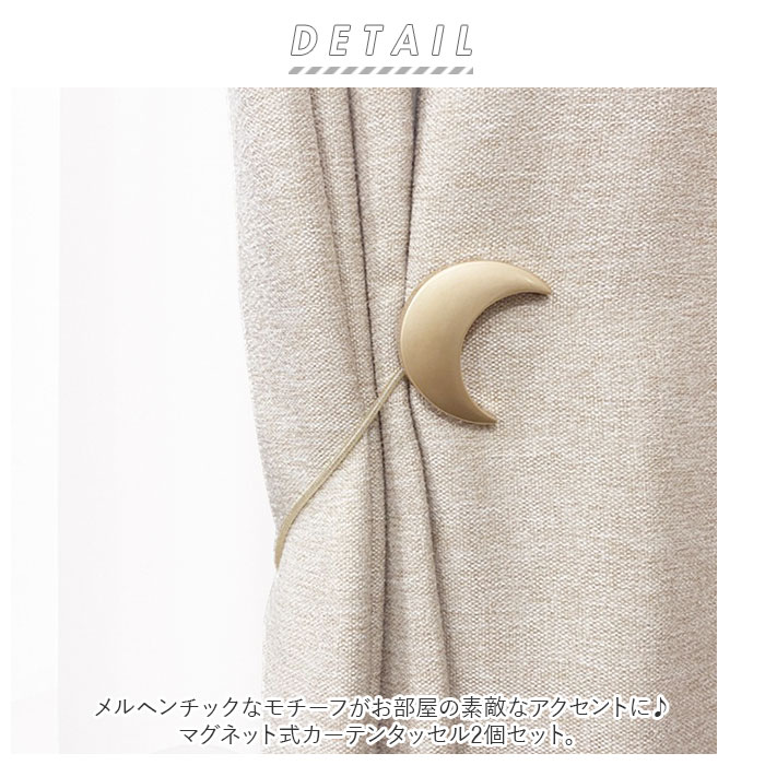 | ・メルヘンチックなモチーフがお部屋の素敵なアクセントに♪マグネット式カーテンタッセル2個セット。 ・まとめたカーテンにロープをクルっと巻き付けて、マグネットでピタッと留めるだけ! ・タッセルフックを別途壁に取り付ける必要がなく、壁紙やサッシの表面を傷つける心配がないのも嬉しいポイント! ・インテリアの雰囲気に合わせてチョイスできる「ゴールド」と「シルバー」のメタリックカラー。 ・モチーフと同じ色のワイヤーを細く編み込んだ、半透明の華奢なロープもオシャレ♪ ・ママとパパの寝室には「星」と「月」、子ども部屋用には「羊」など、家族のお部屋ごとにモチーフを使い分けても楽しい! ・掃き出し窓用のカーテンにコーディネートしやすい、2個セット。 |