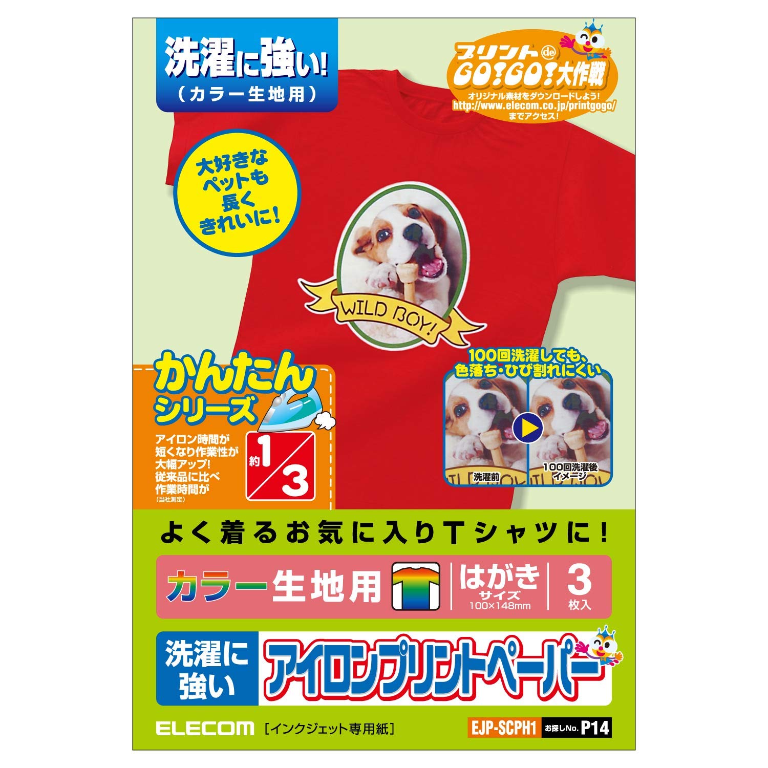 エレコム アイロンプリントペーパー はがきサイズ 3枚入り 洗濯に強い カラー生地用 【日本製】 お探しNO:P14 EJP-SCPH1