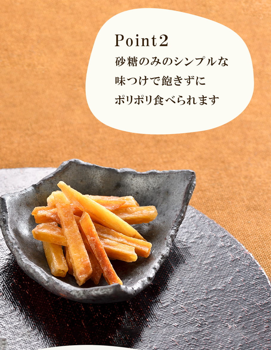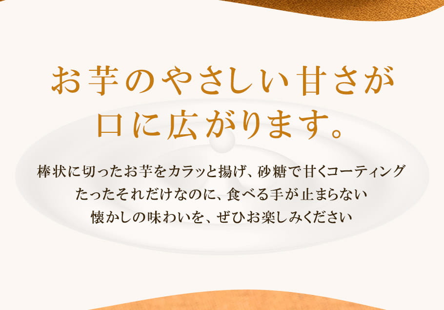+原材料名 | 甘藷(九州産)、植物油脂、砂糖 |