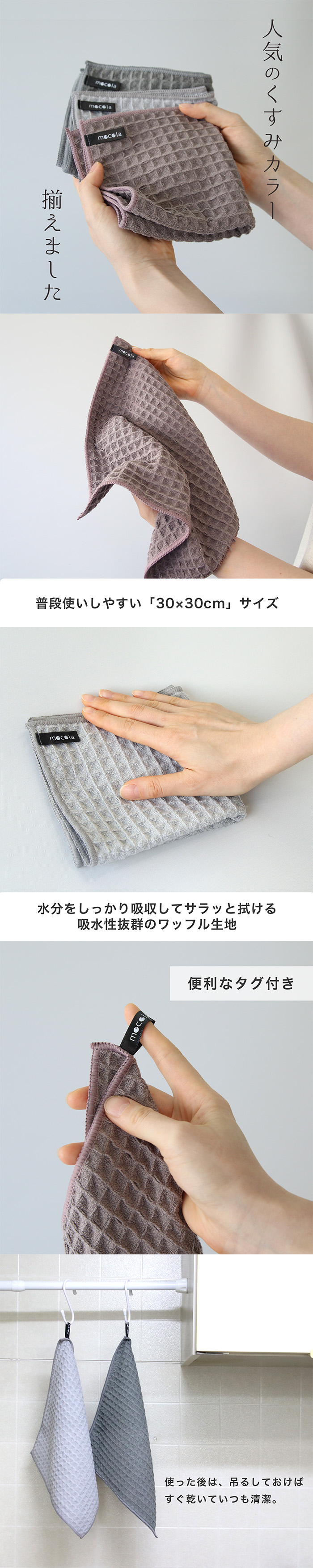 | 商品名 | mocolacloth Waffle モコラクロス ハニカム タオル 吸水 速乾 ワッフル生地 おしゃれ 台拭き 食器拭き キッチンタオル 選べるカラー |