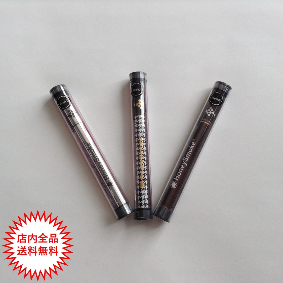 使い切り電子タバコ ハニースモーク ニコチンタール0 シルバー柄、千鳥格子柄、木目柄