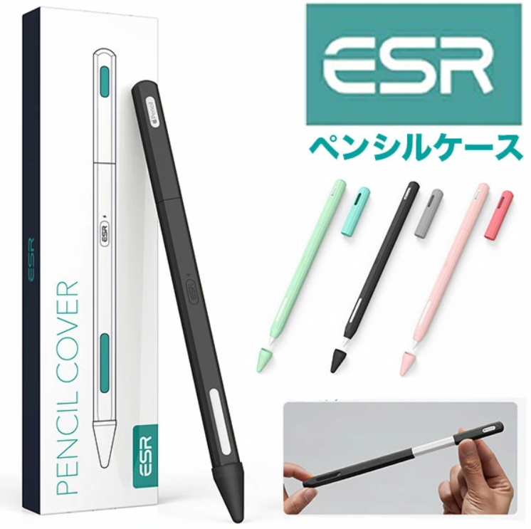 ESR Apple pencil ケース タッチペンカバー アップルペンシル第2世代対応 カバー シリコン製 滑り止め 薄型 落下保護 握りやすい レビュー 100日保証
