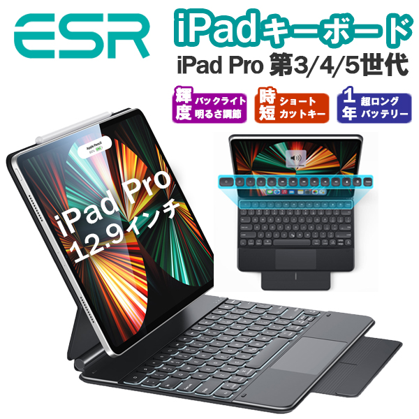 ESR iPad キーボードケース iPad Pro12.9 (2022/2021/2020/2018) 第3/4/5/6世代 磁気吸着 Pencil2対応 シルク手触り バックライト レビュー投稿 100日保証