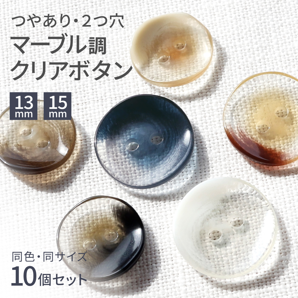 マーブル調 クリア ボタン 10個入 透明 ガラス調 2穴 13mm/15mm ホワイト ベージュ ブラウン ダークブラウン ネイビー ブラック 手芸 裁縫 おしゃれ VS1009
