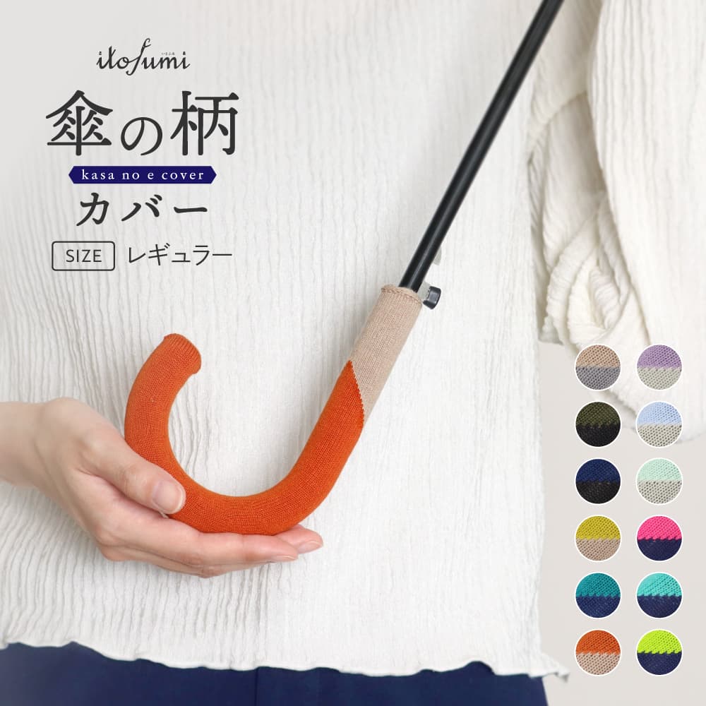 itofumi 傘の柄カバー 全12色 レギュラーサイズ 抗菌防臭 傘 持ち手 ウォッシャブルニットカバー コットン 雨の日 梅雨 レイングッズ 傘立て目印 盗難防止