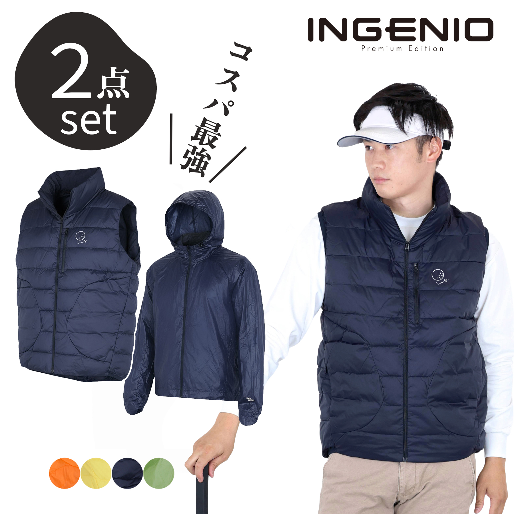 ゴルフ ダウンベスト ゴルフウエア 中綿 ウインドシェル付き 2点セット 立ち襟 長袖 暖かい 撥水 Ingenio スポーツ メンズ レディース