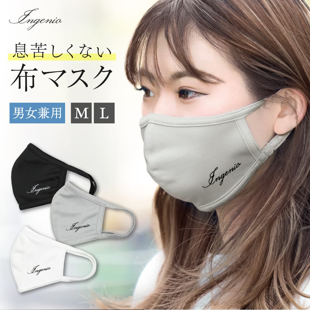 布マスク 洗える おしゃれ 息がしやすい 大きめ スポーツ 快適 通気性あり リラックスできる ブラック 黒 ホワイト 白 マスク Ingenio