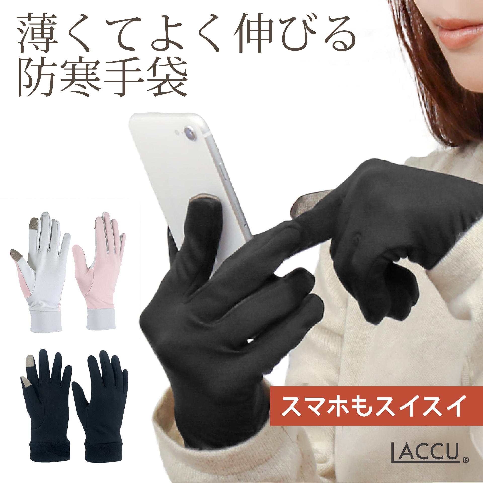LACCU 手袋 レディース メンズ 薄手 撥水 スマホ対応 フリーサイズ 裏起毛 通勤 通学 普段使い ランニング 暖かい 薄い 軽量 ブラック ピンク 伸縮性