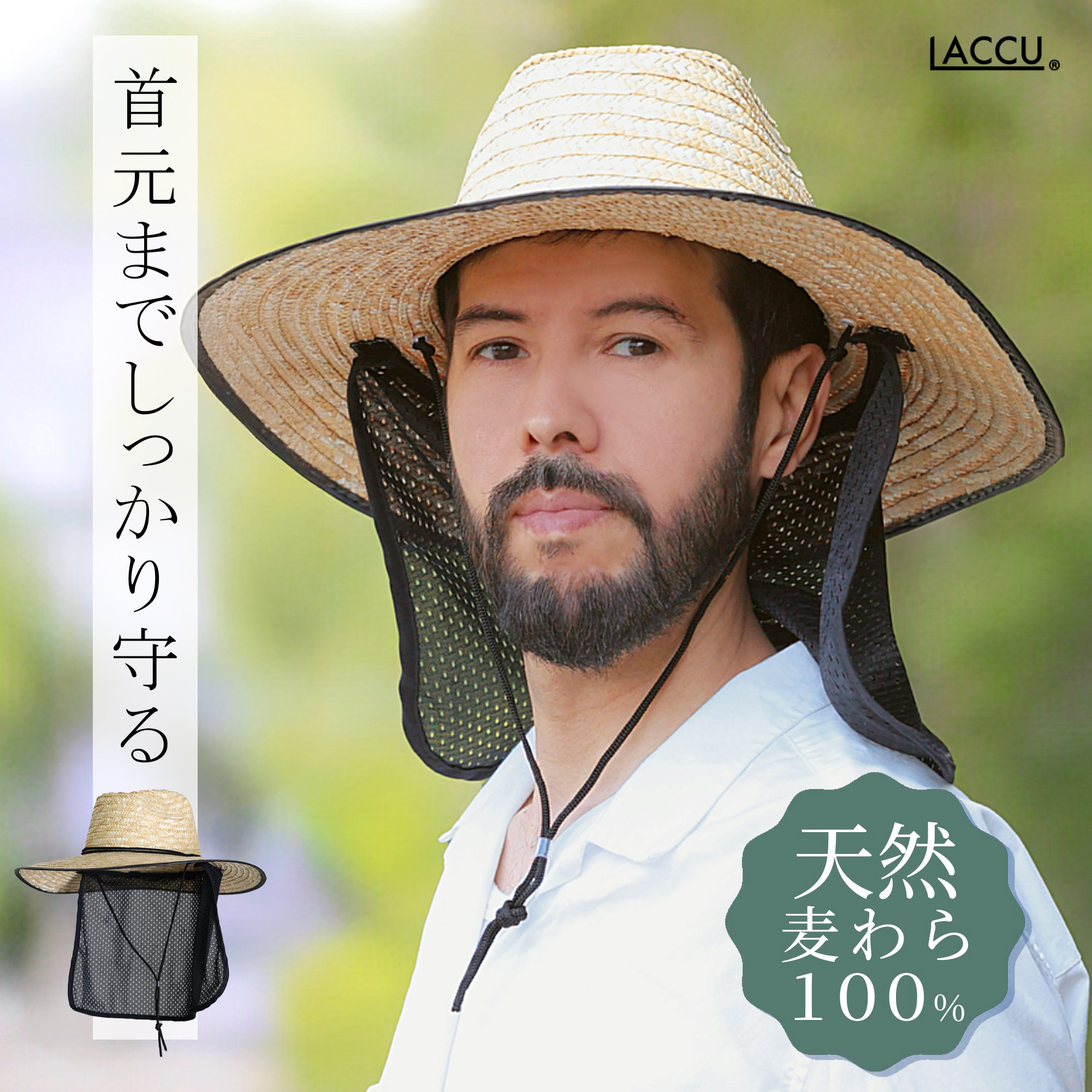麦わら帽子 カウボーイメッシュ日よけ付 農作業 メンズ 通気性 天然麦わら 手編み 人気 熱中症対策 農業 農作業 園芸 ガーデニング 外出 アウトドア紫外線対策