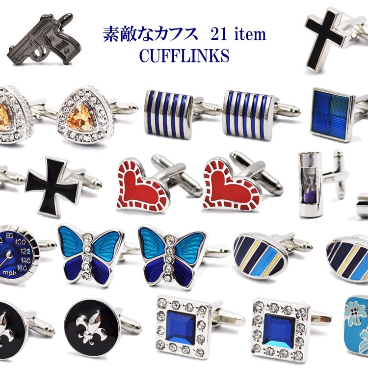 カフスボタン おしゃれ 砂時計 蝶々 ピストル クロス レッド ブルー手提げ紙袋 ケース付 ギフト バレンタイン