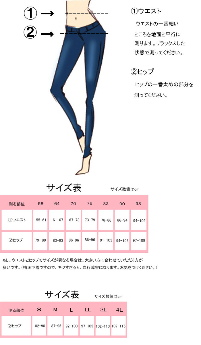 A.ガードルにとって、一番重要なことは、サイズが自分自身にあっているか、ということ。サイズが自分にあっているかどうかによっても効果は全然違います。大きすぎると、効果があまりないし、小さすぎると、履けないということが起こります。サイズは、次の測り方を参考にしながら、測り、サイズ表をご確認して、決めてください。