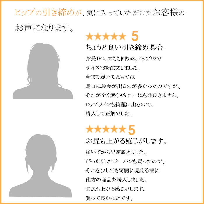 買って良かった。160センチ51.5キロ脂肪多めの短足ですが、70で丁度良かったです。タイトのロングスカートを履くのに、垂れたヒップも上がり形も良くなって短足でも格好良く履けました。お腹も満腹の出てる状態でもキツすぎず程よい締め付けで気持ち良いです。太ももも丁度良かったし、肌触りもサラッとしてます。安く買えて嬉しいです。