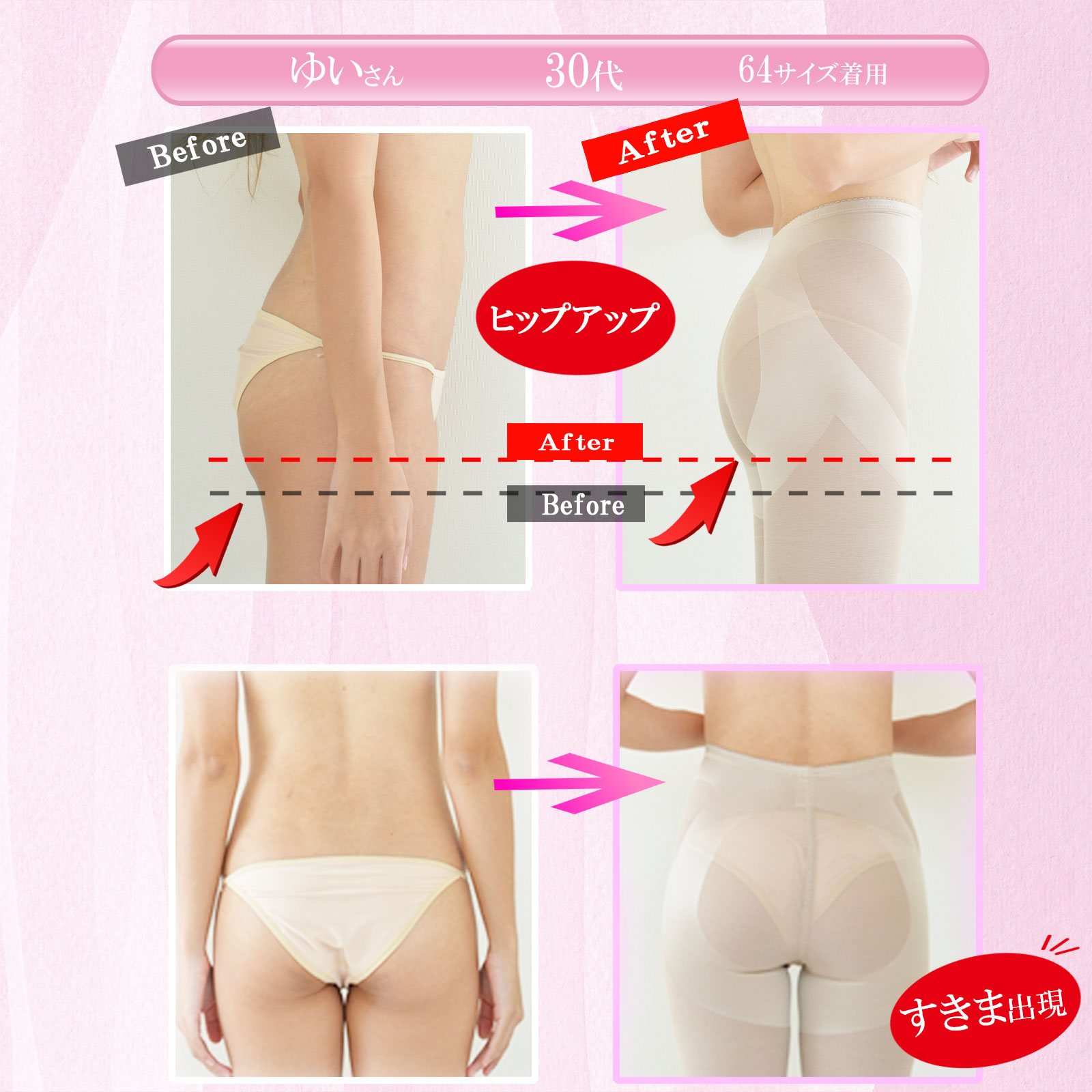 ・おしりをヒップアップ、美尻をサポートする立体裁断
