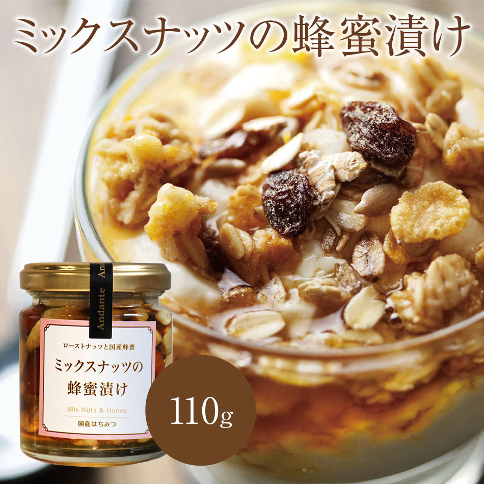 国産はちみつとミックスナッツが調和して、香ばしさと甘みが口の中に広がります。