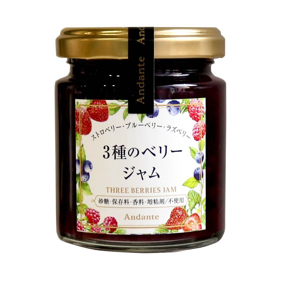 名称:ジャム内容量:120g原材料:3種のベリージャム:いちご、ブルーベリー、ラズベリー、オリゴ糖シロップ、蜂蜜、レモン保存方法:直射日光・高温多湿を避けて保存してください。※開封後は要冷蔵保存賞味期限:ラベルに表記 ※開封後は要冷蔵に保存し、早めにお召し上がりください。販売者:株式会社Andante住所:〒839-1233 福岡県久留米市田主丸町田主丸455−42