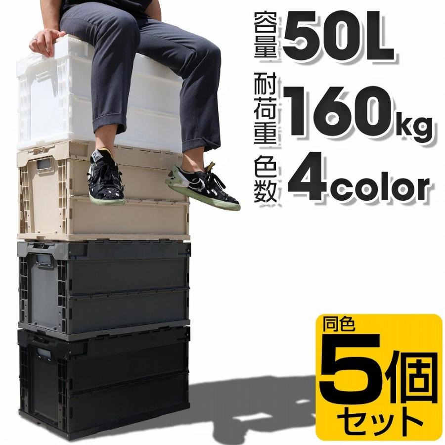 5個セット 日本製 コンテナボックス 折りたたみ 大型 蓋付き 50L 耐荷重 160kg オリコン 折りたたみコンテナ 折り畳みコンテナ
