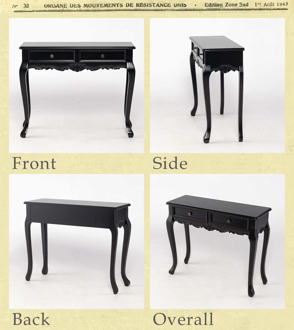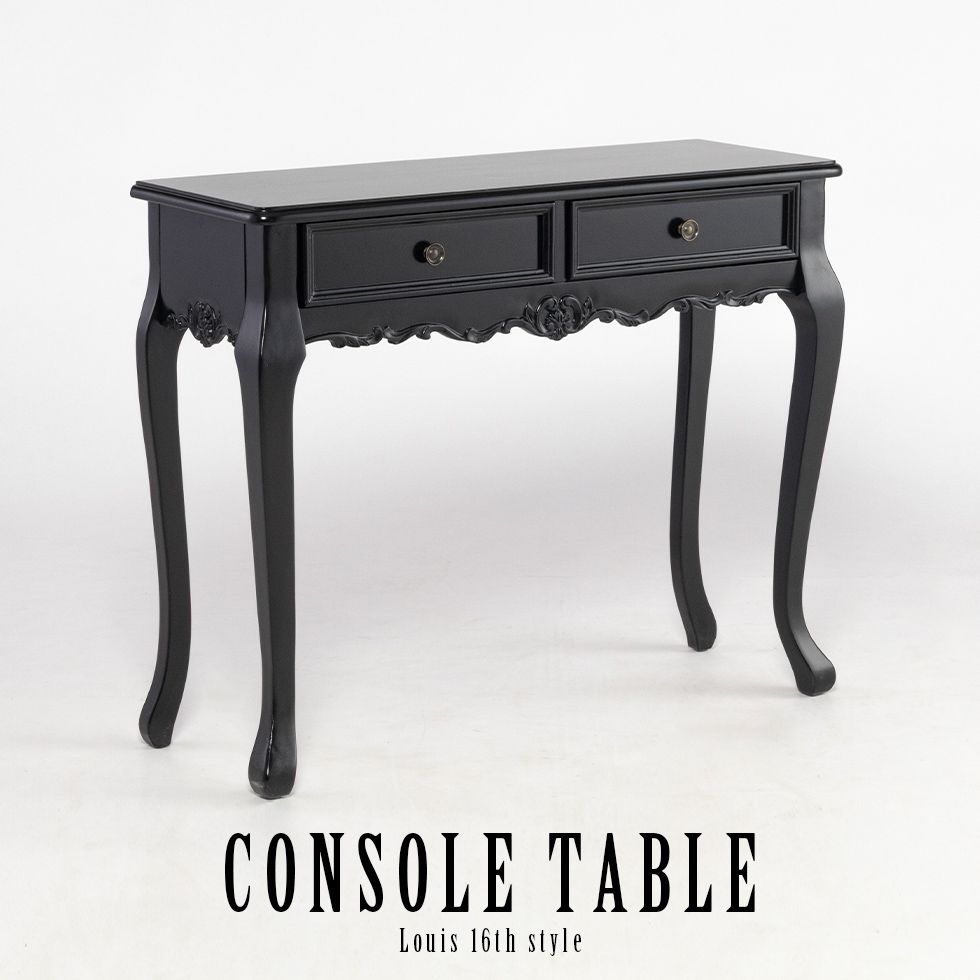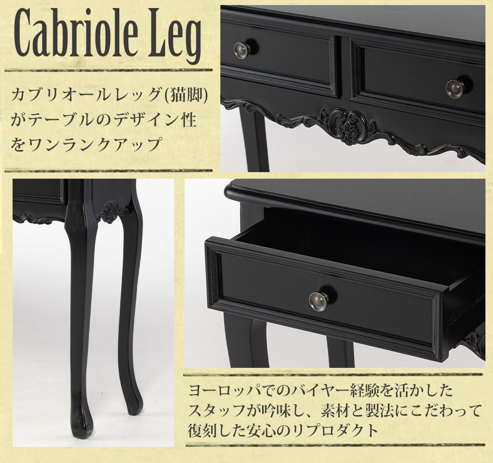 コンソールテーブル 机 サイドテーブル アンティーク風 ロココ調 フレンチスタイル 猫脚 引き出し収納 ブラック e4018-8 リプロ
