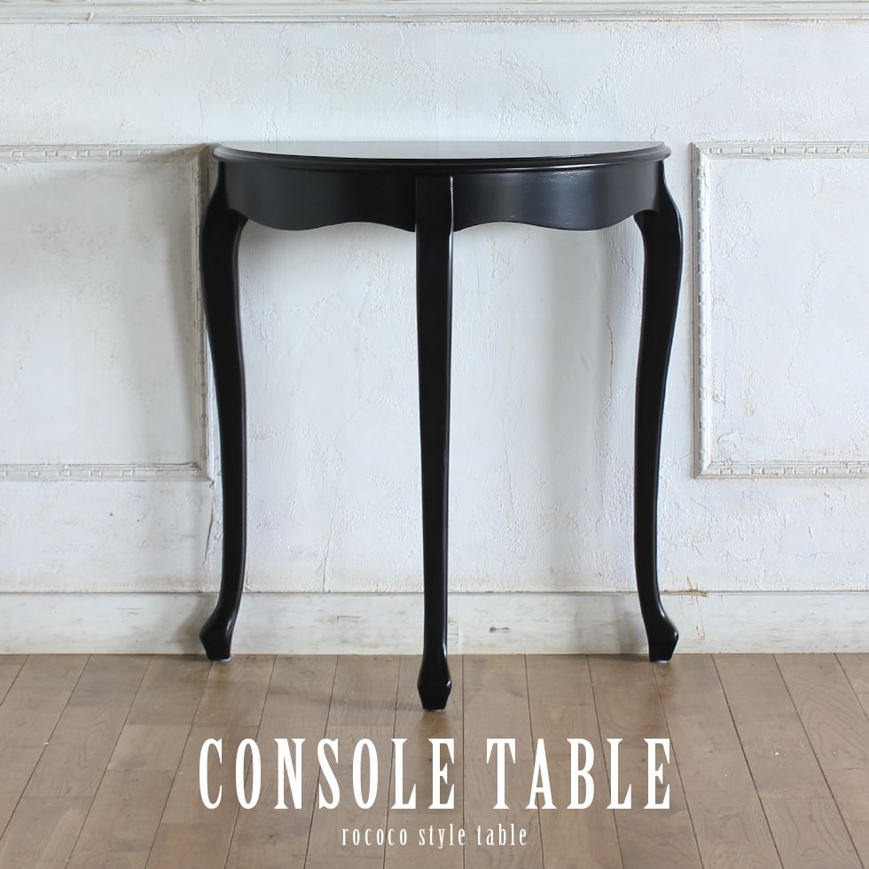 コンソールテーブル アンティーク ロココ調 エレガント フレンチ ヨーロッパ 猫脚 ブラック 黒 e4119-m-8 リプロ B 70*35*75