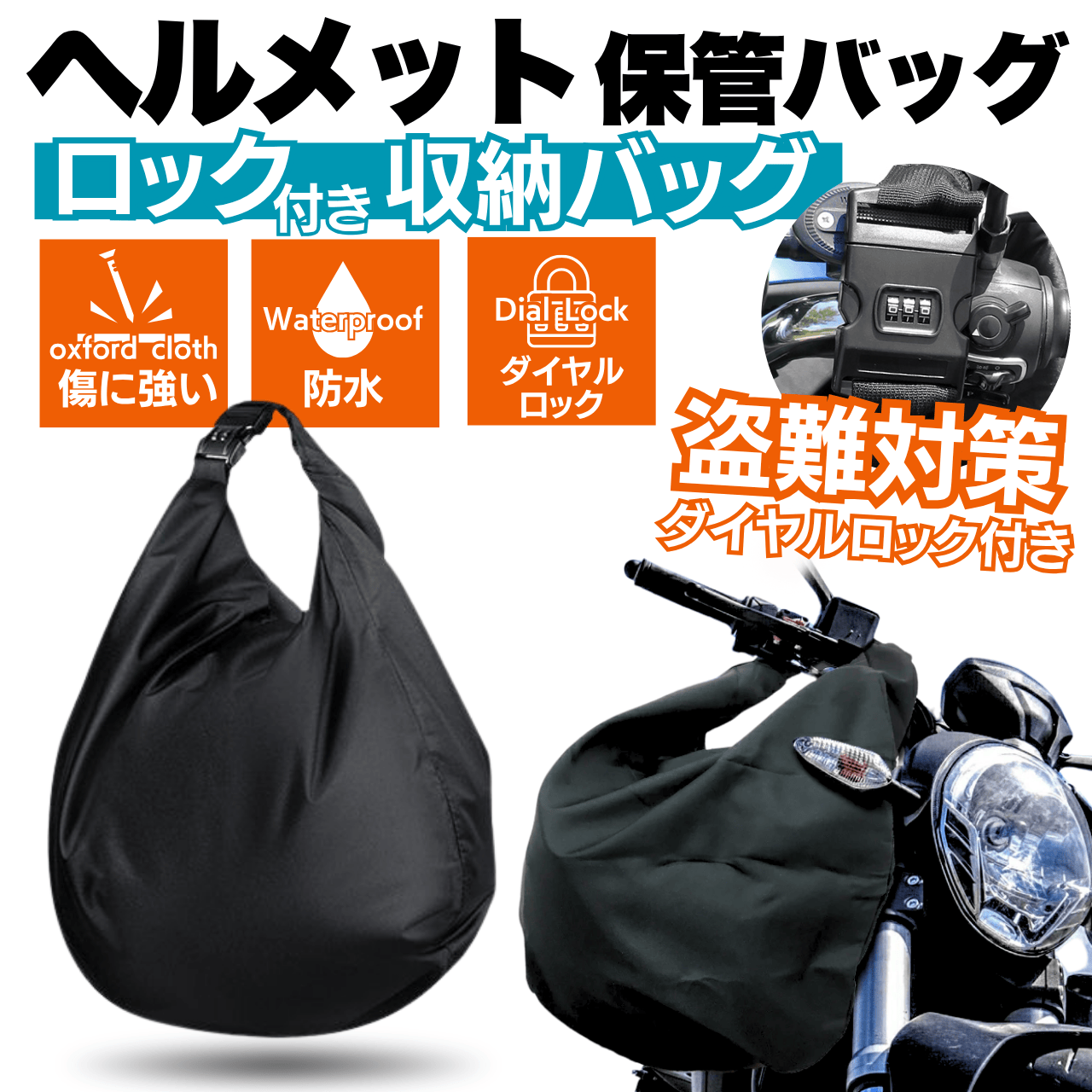 ヘルメットバッグ ダイヤルロック付 説明書付き 防水 大容量 バイク ヘルメット収納 保管 撥水 ロック付き バッグ 多用途 盗難防止