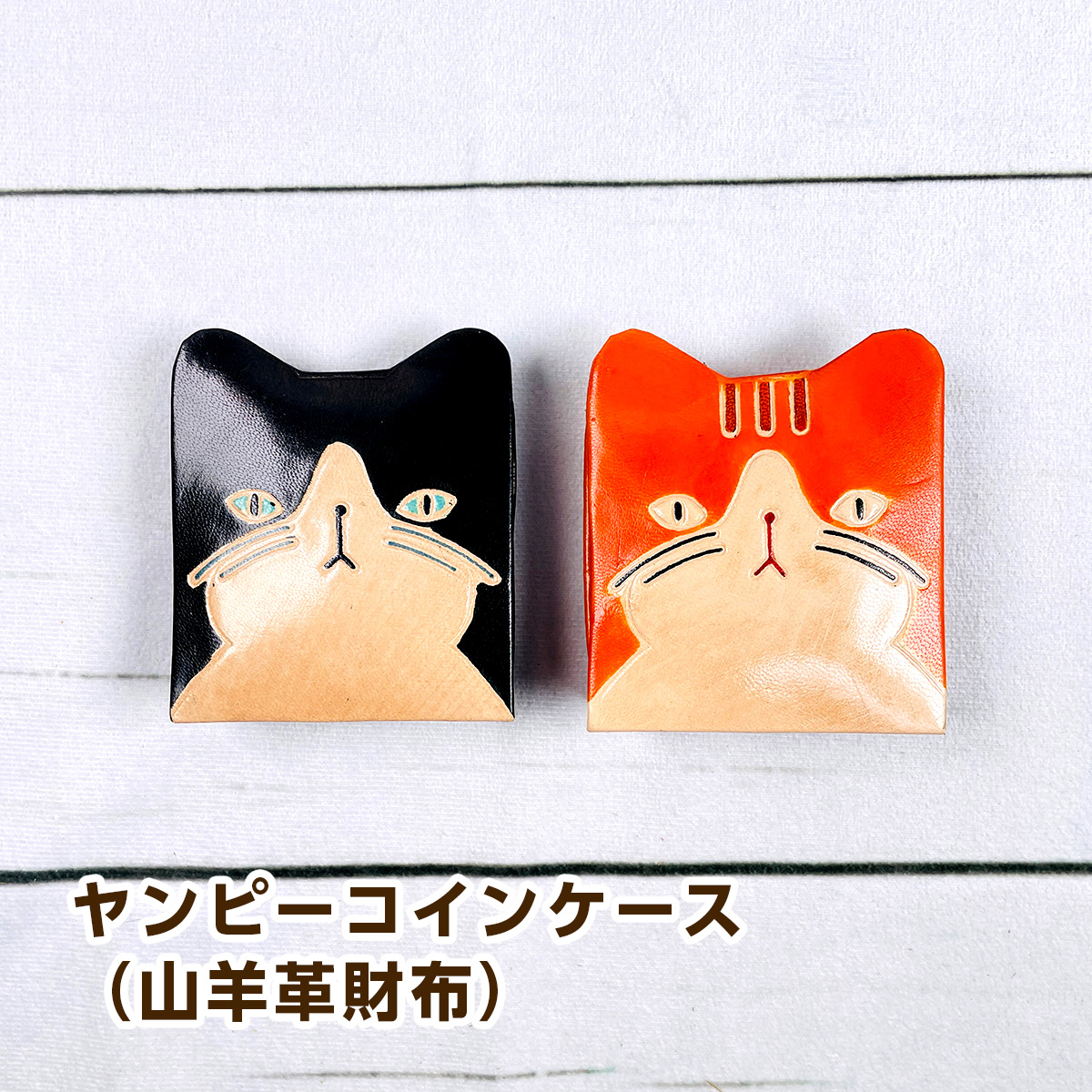 トモ・コーポレーション 猫 ヤンピーコインケース(山羊革財布)(ハチワレ猫/トラ猫)