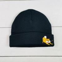 柴犬の柴田さんが拒否柴している刺繍がとってもかわいいニット帽です。冬のお散歩におすすめ。