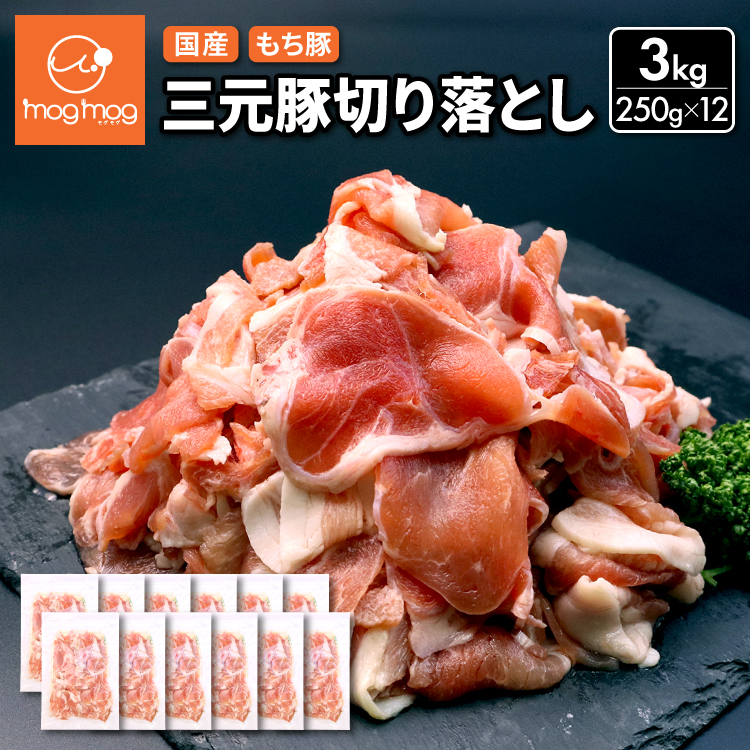 送料無料 国産 三元豚の切り落とし 3kg(250g×12) 三元豚 もち豚 豚肉 ポーク 国産 切り落とし 切落し 大容量 小分け しゃぶしゃぶ 小間切れ こま切れ