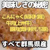 ■原材料名:生芋こんにゃく(昭和村産)、牛肉(上州牛)、豚肉(奥利根もち豚)、パン粉、ケチャップ、タマネギ、卵白粉、食塩、香辛料、(一部に小麦・卵・牛肉・豚肉を含む)