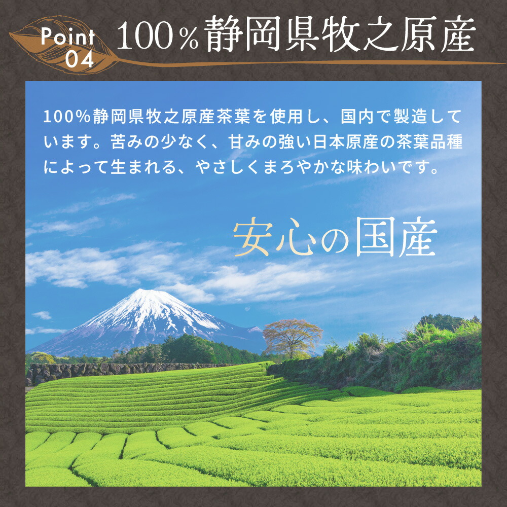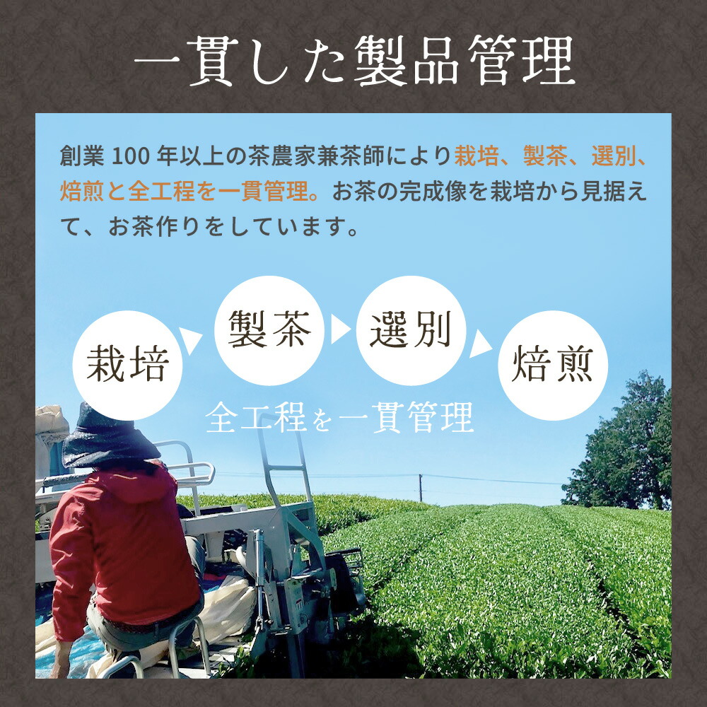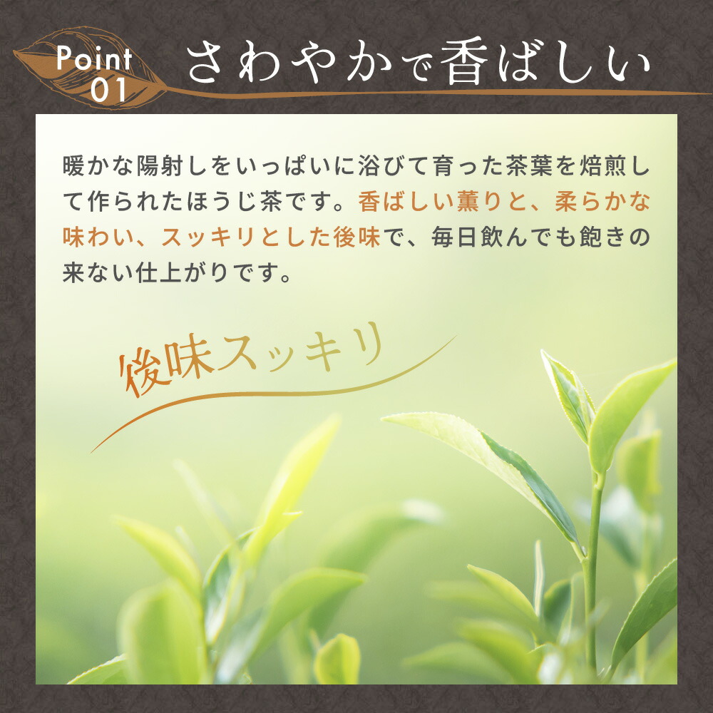 明治45年創業の老舗茶園が静岡・牧之原台地で育てた茶葉を100%使用した、カフェインレスのほうじ番茶。