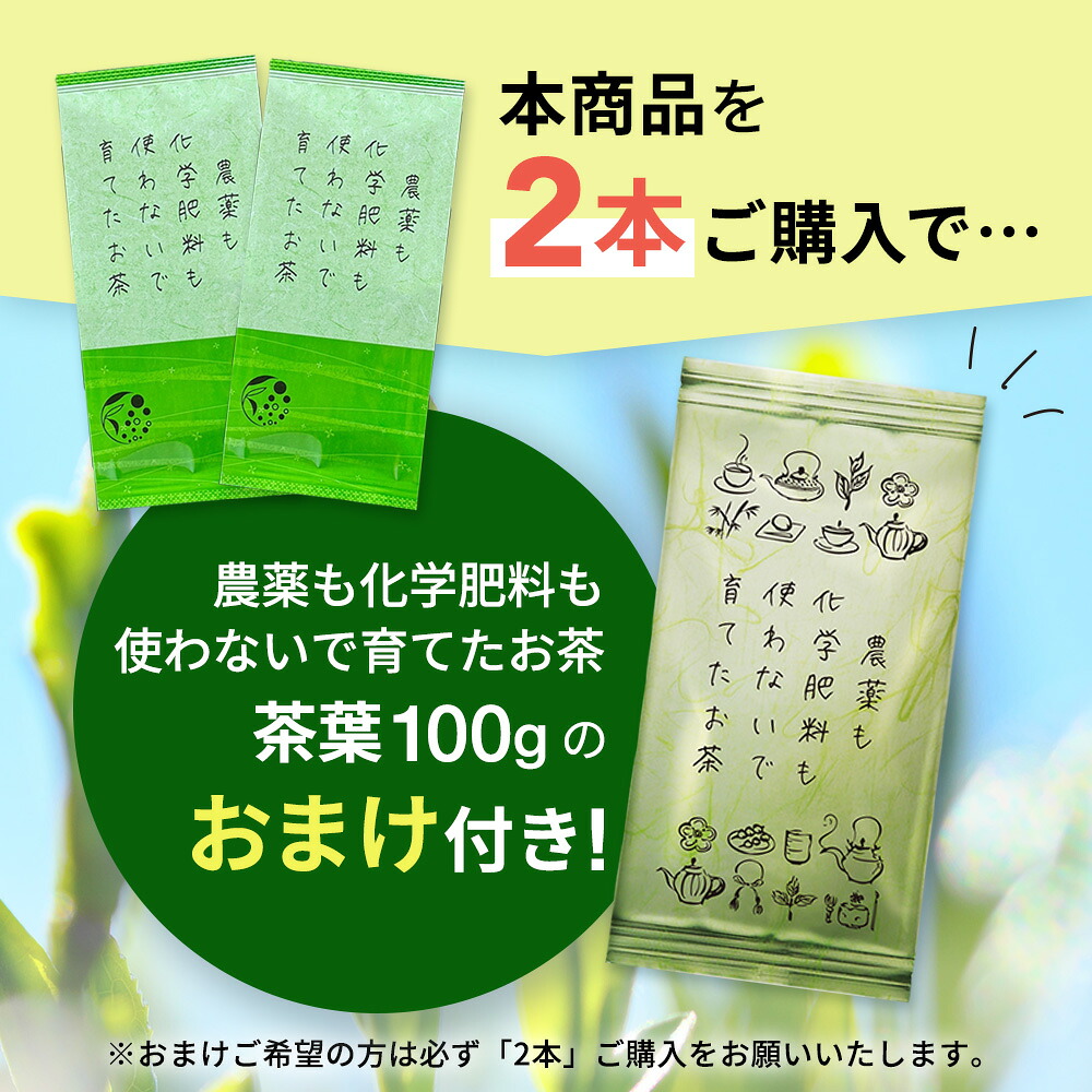 お茶 緑茶 農薬不使用 2本購入で100gおまけ お茶の葉 茶葉 200g 農薬も化学肥料も使わないで育てたお茶 爆買