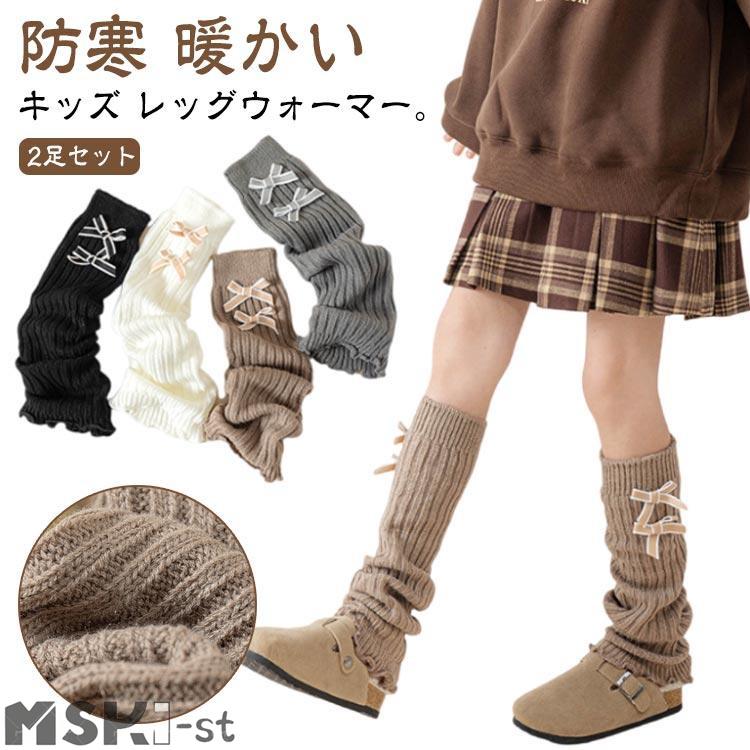 無地 ソックス 女の子 指なし 靴下 防寒 暖かい リブ編み 温活 ロング丈 2足セット 子供用 キッズ 冷え対策 シンプル 柔らか