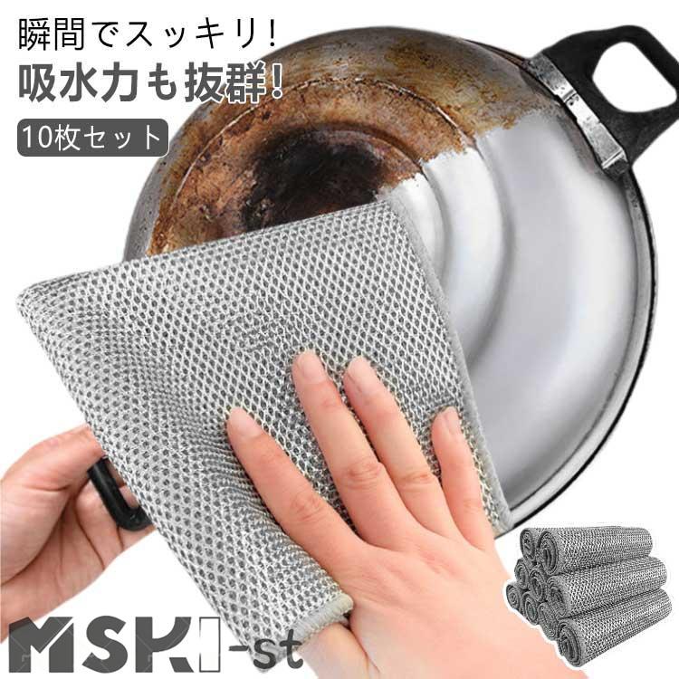 10枚セット 竹炭キッチンクロス リバーシブル ふきん お手入れ簡単 銀糸入り 両面使用 繰り返し使用可能 ワイヤーふきん リバーシブル 耐熱 耐久性