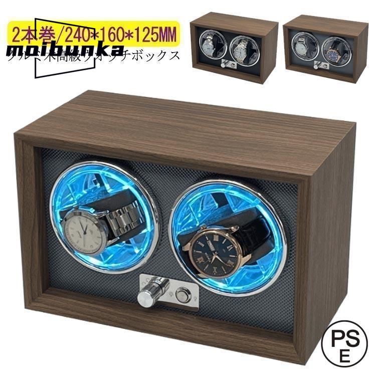 ワインディングマシーン 2本巻 LED 高級感満々のクルミ木 げ機 機械式 時計自動巻き上げ メンズ レディス ウォッチワインダー 超静音 自