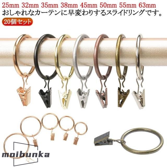【20個セット】 カーテンリング カーテンクリップが付き カーテンフック カーテンリングクリップ 取付簡単 金属製 カーテン止め 【20個セット】 シ